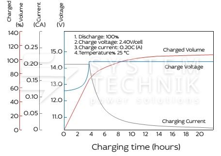 - Срок хранения без подзаряда: 6 мес. при 25°C;
