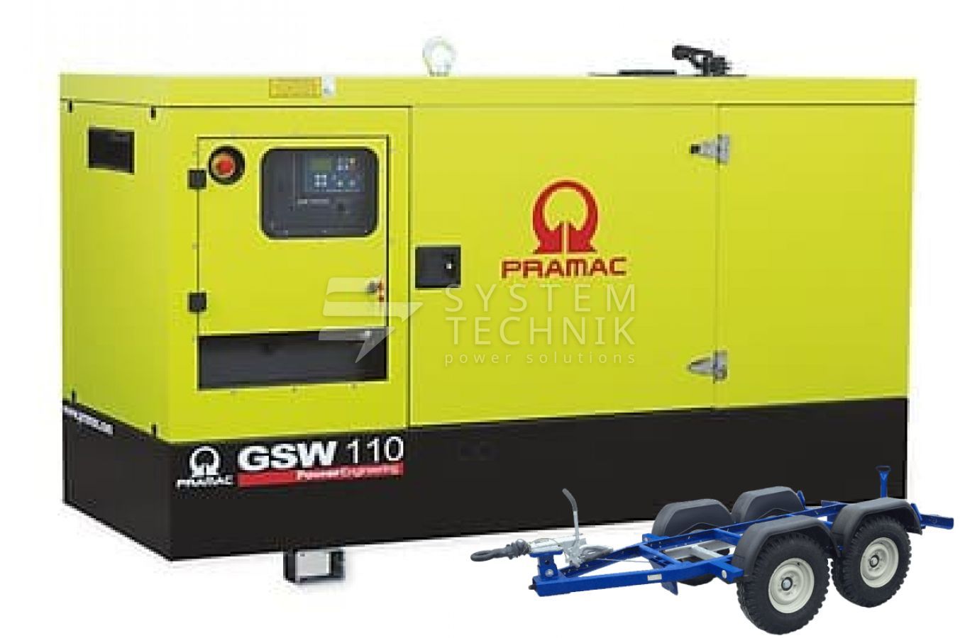- Дизельный генератор Pramac GSW 110 V 440V В кожухе на прицепе