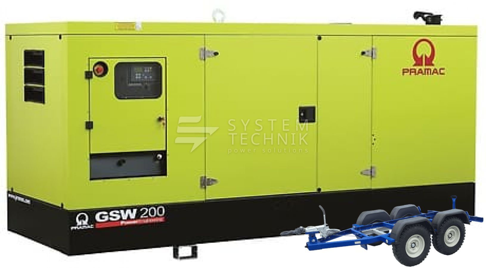 - Дизельный генератор Pramac GSW 200 V 400V В кожухе на прицепе