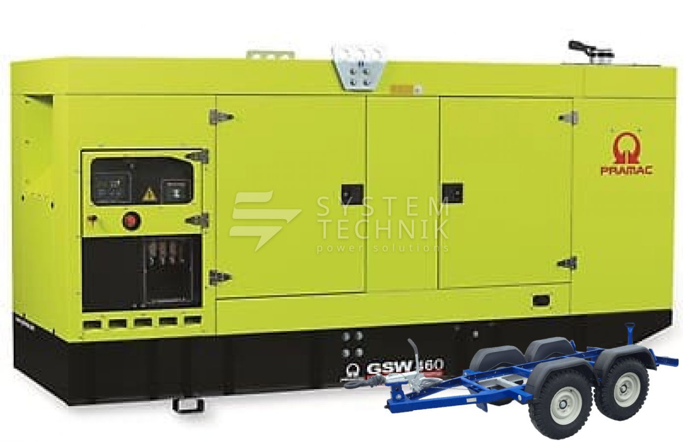 - Дизельный генератор Pramac GSW 460 V 440V В кожухе на прицепе